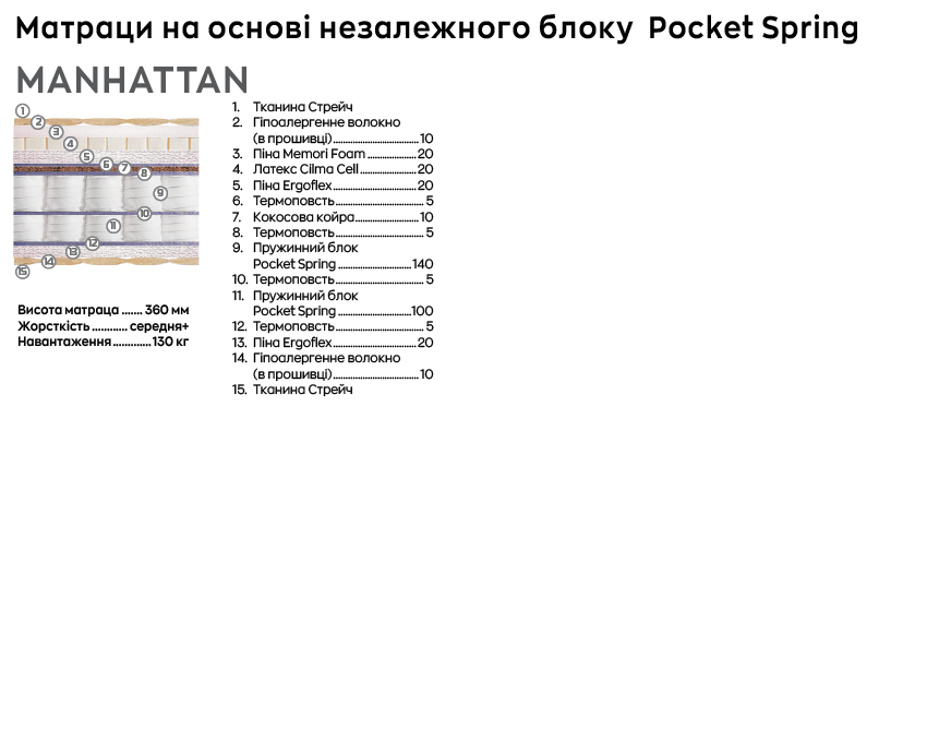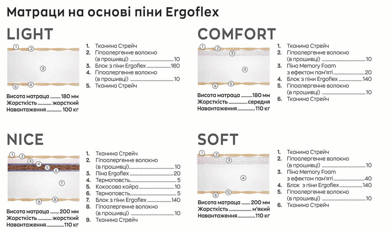 The company produces mattresses based on the spring unit Pocket spring, uses flax in the firmware of mattresses. This material regulates the microclimate during sleep, prevents the occurrence of a «greenhouse effect» and overheating. Len perfectly passes air and evaporates moisture, is an eco-friendly material.