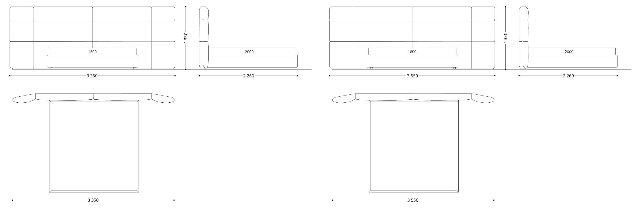 L - 3550 mm, W - 2260 mm, H - 1300 mm.