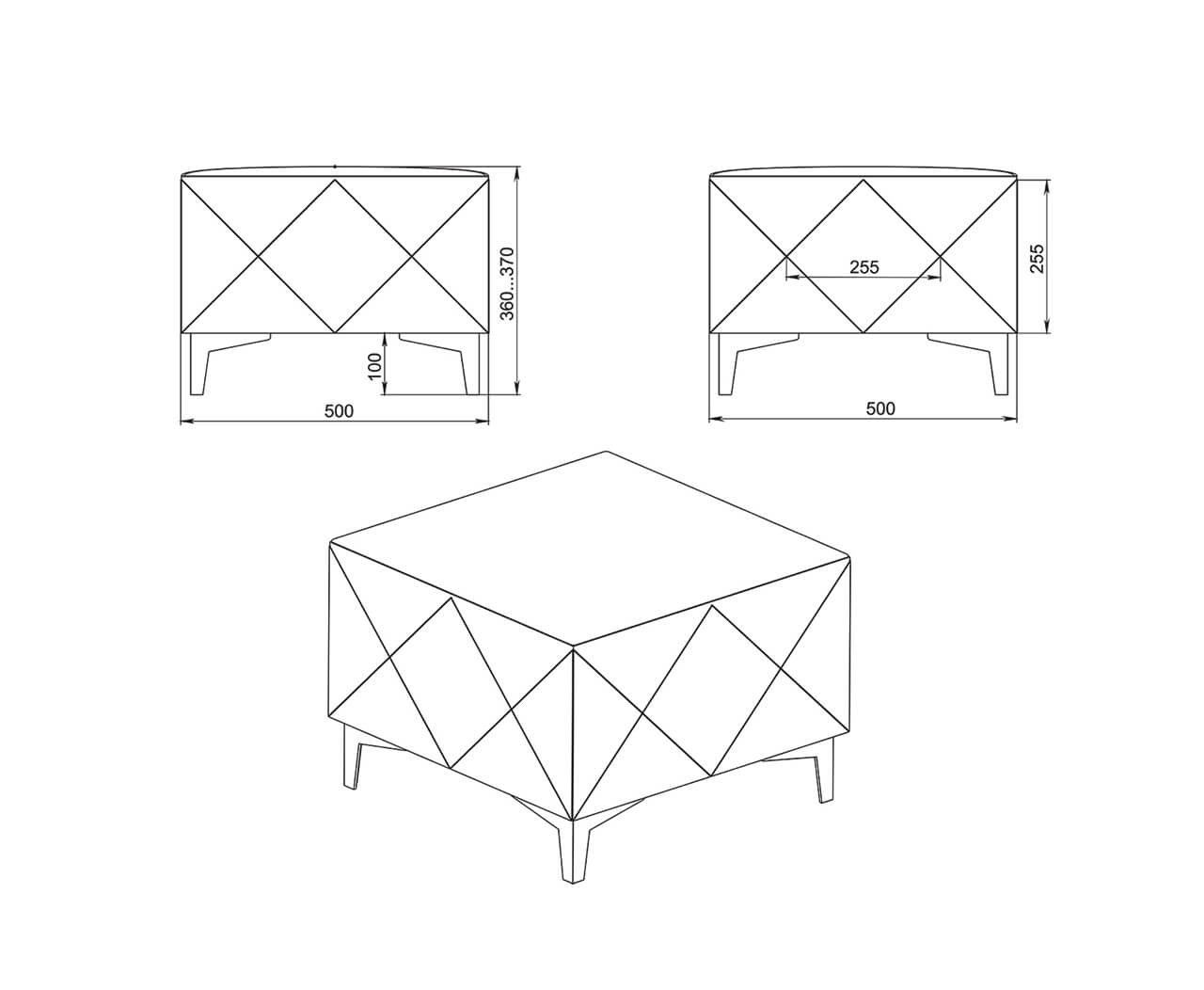 Pouf: 500 (w) х 500 (d) х 370 (h).
