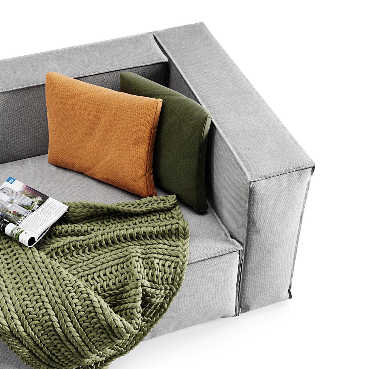 The modules are connected by hooks. This allows you to move the sofa to the other side and change the angle of the sofa.