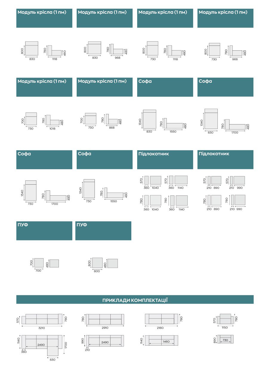 Medison sofa 3: 3210 (l) х 1140 (d) х 780 (h).