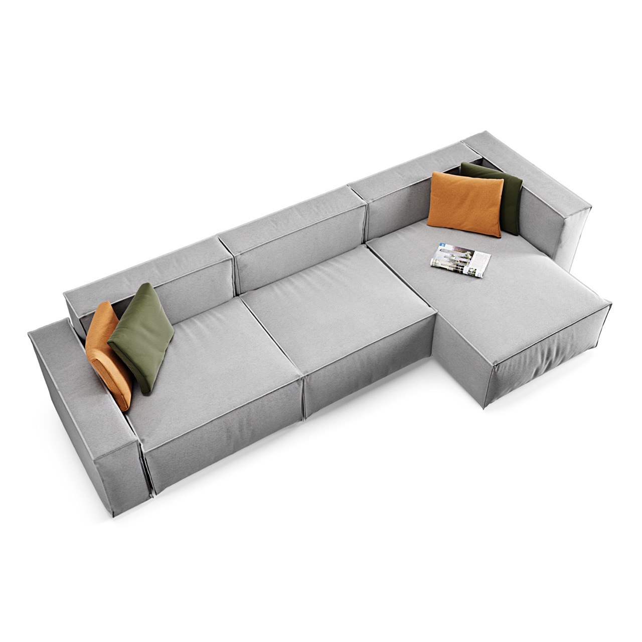 The modules are connected by hooks. This allows you to move the sofa to the other side and change the angle of the sofa.