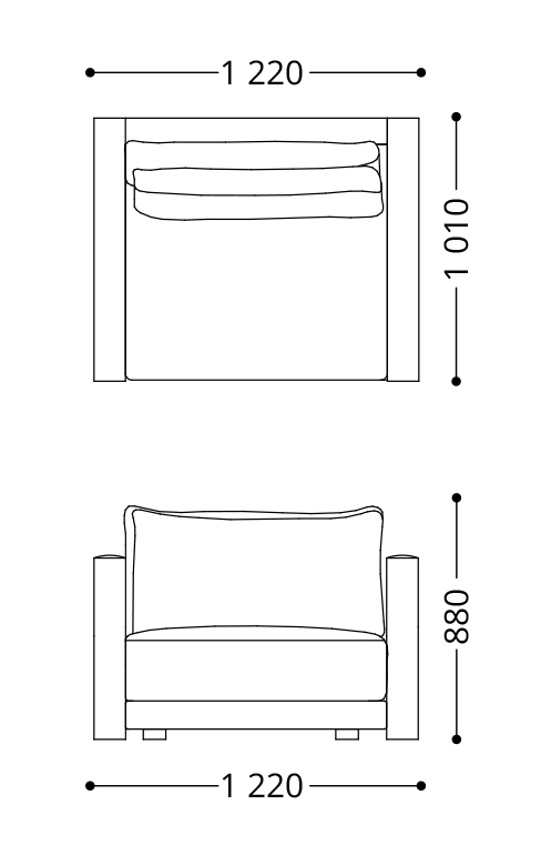 Armchair Sydney: 3460 (д) х 1010 (г) х 880 (в).