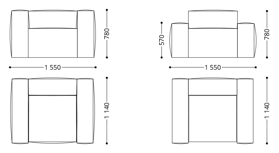 Крісло Medison 1: 1550 (д) х 1140 (г) х 780 (в).
